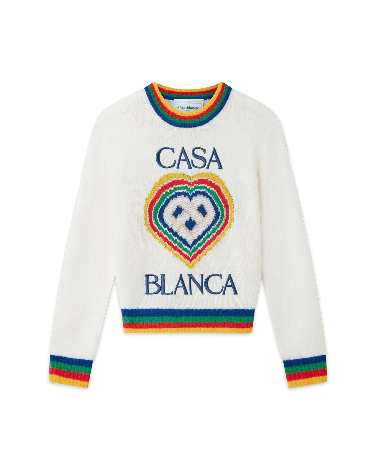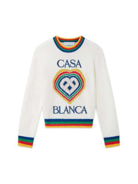 The Heart Casa intarsia wool jumper featuring seasonal artwork incorporating the house's stacked logo and heart monogram. Completed with a classic long-sleeved crew neck style with contrast rib knit collar and cuffs finishing. Wool blend fabric 95% virgin wool 5% polyamid Colour: white Specialised dry clean only Fits true to size, take your regular size The model is 177cm/5’10 and is wearing a size S
