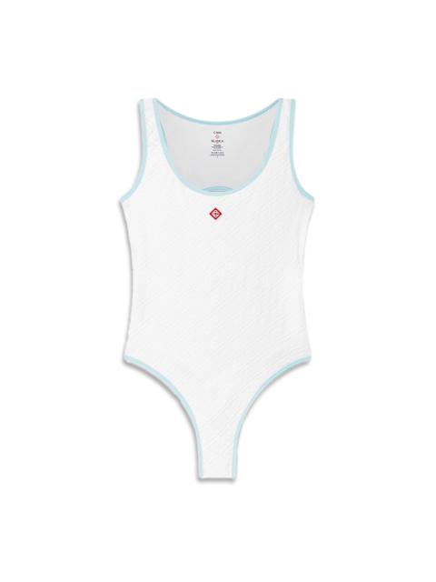 The jacquard monogram bikini top is a printed design crafted from a breathable poly-blend fabric, featuring the house's signature diamond monogram. Completed with white string fastenings - this piece is designed to be worn with its matching bikini bottom. - Poly blend fabric - 94% polyamide 4% elastane - Colour: bright white - Delicate machine wash - Made in Portugal - Fits true to size, take your regular size - The model is 179cm/5'10.5 and is wearing a size S