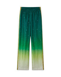 The Joyaux D'Afrique silk trousers are an ombre printed style crafted from a printed silk twill fabric featuring references from Nigeria and the house's jewellery designs. Crafted from a silk twill fabric, complete with slanted pockets, zip closure, and white stripe detail with jewellery-inspired borders down the sides. Printed silk twill fabric 100% silk Joyaux D'Afrique print green Specialised dry clean only Made in Italy Fits true to size, take your regular size The model is 177cm/5’10 and is wearing a size S