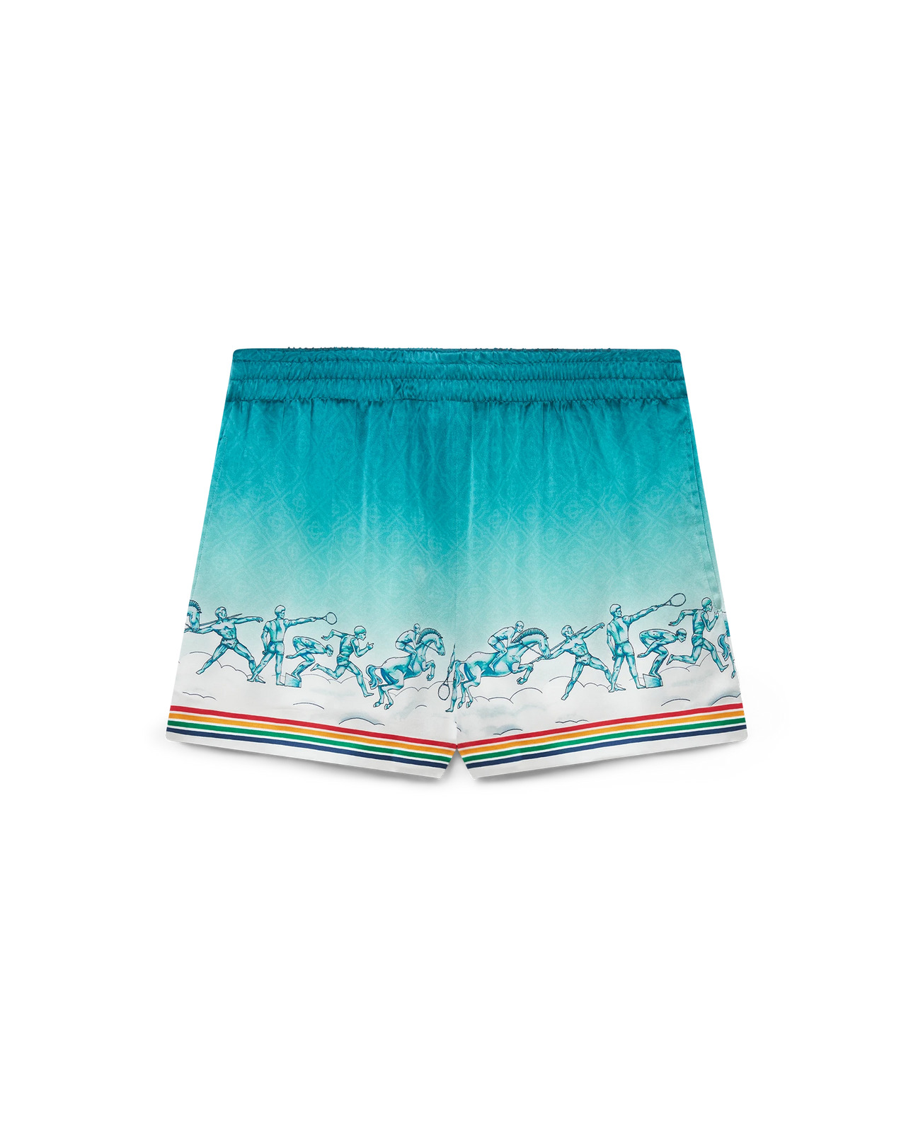 The La Deesse Du Stade shorts are a gradient printed design crafted from a monogram silk satin fabric featuring the house's seasonal artwork - paying homage to the Olympics. Completed with an elasticated waistband with drawstring fastening, in-seam side pockets, a back pocket, and multicolour striped detail on the hem and back pocket. Printed silk satin fabric 100% silk satin Lining: 100% polyester La Deesse Du Stade multicolour Specialised dry clean only Made in Italy Fit true to size, take your regular size The model is 177cm/5’10 and is wearing a size S