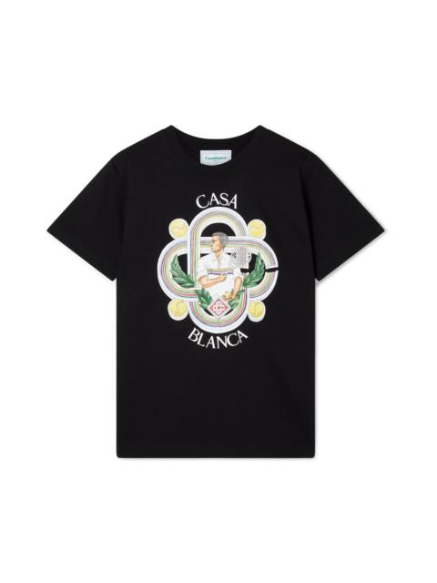 The La Flamme Du Sport screen-printed organic cotton t-shirt features seasonal artwork incorporating the house's iconography. Completed with a classic crewneck, short sleeves and Casablanca Paris branded label, designed for a relaxed fit. - 100% organic cotton - Colour: black - Delicate machine wash - Made in Portugal - Unisex fit, take your regular size