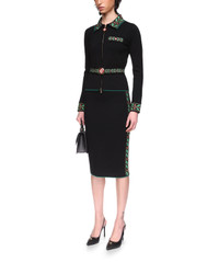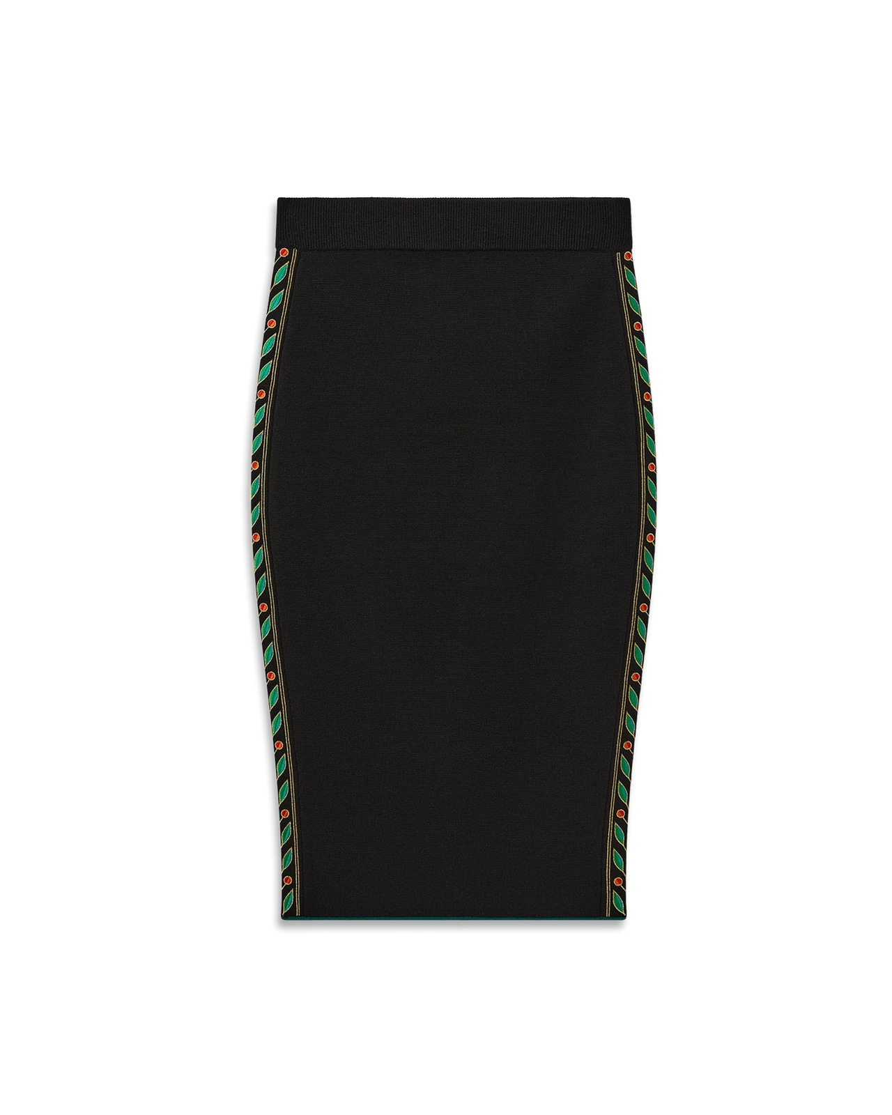 The Laurel skirt is a mid-length design crafted from a knitted merino wool fabric. Completed with an elasticated waistband with rib detail, and the house's signature Laurel artwork down the sides. Merino wool fabric 100% merino wool Embroidery: 100% polyester Colour: black Specialised dry clean only Fit true to size, take your regular size The model is 177cm/5’10 and is wearing a size S