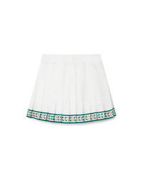 The Laurel silk tennis mini skirt is a classic pleated mini skirt design featuring Laurel artwork around the hem. Crafted from 100% silk and lined with 100% polyester, this piece is completed with a zip closure and a plain waistband. - Silk twill fabric - 100% silk - Lining: 100% polyester - Colour: white - Specialised dry clean only - Made in Italy - Fits true to size, take your regular size