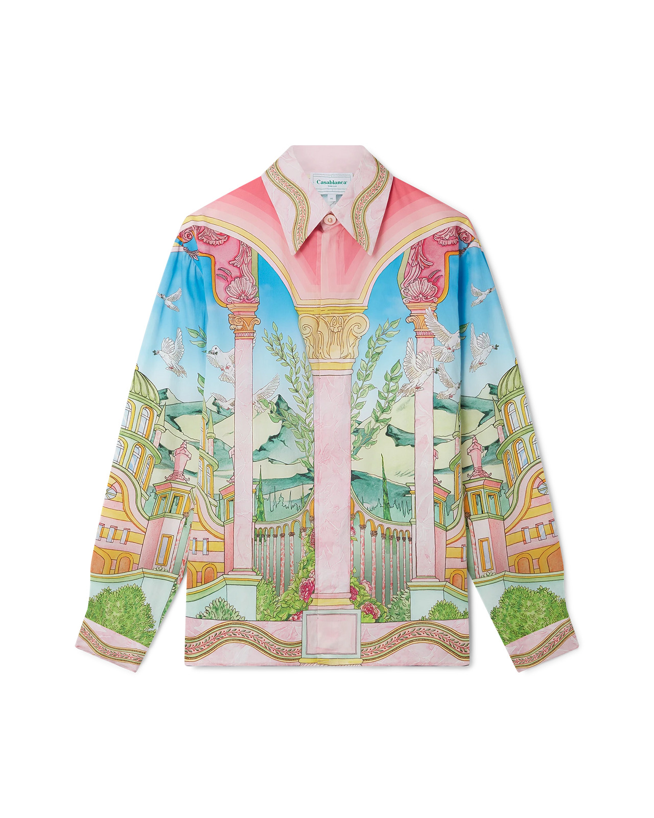 The Le Jardin Ideal shirt is a printed long-sleeve design featuring the ethereal imaginary world of Casablanca. Finished with the house's signature enamel rim pearl buttons, button closure, a Casablanca branded label, and floral detail on the collar, cuffs and hem. - Printed cotton fabric - 100% cotton - Le Jardin Ideal print - Specialised dry clean only - Made in Italy - Fits true to size, take your regular size