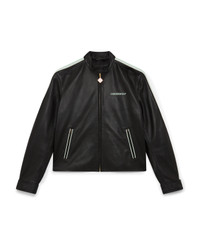 The leather racer jacket is a slim-fit sportswear design crafted from lamb nappa fabric. Completed with a zip closure, slanted front pockets with zip closures, stripe detail down the sleeves, and the house's Casablanca logo. - Leather fabric - Main: 100% lamb nappa - Lining: 100% viscose - Colour: black - Specialised dry clean only - Made in Turkey - Slim fit - The model is 177cm/5'9.5 and is wearing a size S
