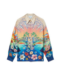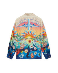 The L'Envol silk shirt is a printed long-sleeve style featuring Casablanca symbology with Arabic iconography. Finished with a collar, front button closure and signature gold rim pearl buttons, it has been designed for a classic fit. - Printed silk twill fabric - 100% silk - L'Envol print multicolour - Cuban collar - Specialised dry clean only - Made in Italy - Unisex fit, take your regular size - The model is 187cm/6’1 and is wearing a size M
