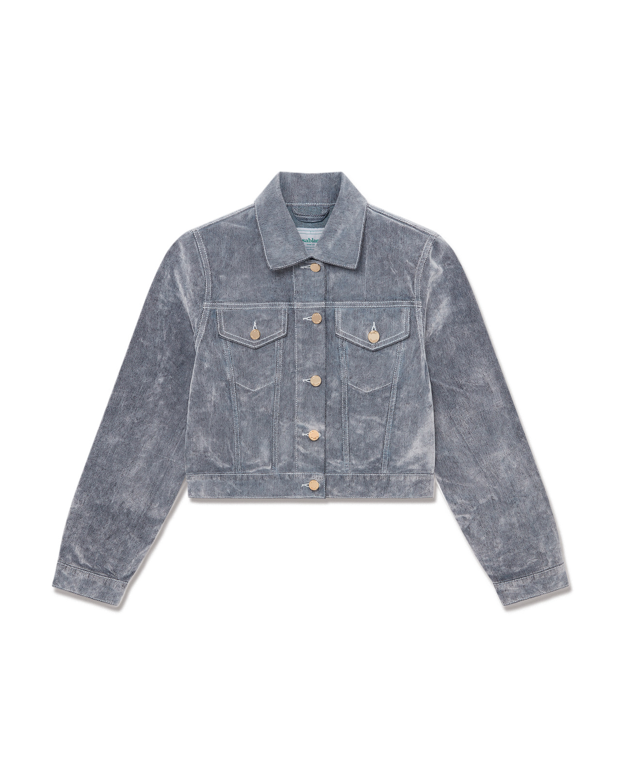 The peach denim jacket is a velvet-textured design with a classic fit crafted from a peach denim fabric. Completed with gold-plated branded hardware, chest pockets - intended to be worn with its matching straight-leg denim. Peach denim fabric 86% cotton 14% viscose cotton Lining: 100% cotton Colour: aqua blue Specialised dry clean only Made in Turkey Fits true to size, take your regular size