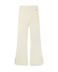 The textured knitted trousers are a lflared design crafted from cotton blend fabric. Completed with an elasticated waistband, flared legs with slit ankle detail, and a gold-plated interlocking CC rivet on the hip. - Cotton textured fabric - 65% cotton 35% polyamide - Colour: white - Specialised dry clean only - Fits true to size, take your regular size - Model is 177cm/5'10 and is wearing a size S