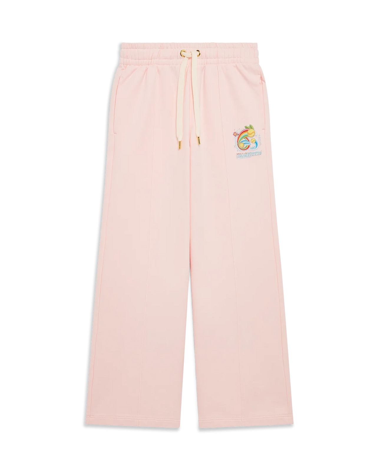 < The Manga Tennis Ball open hem sweatpants are a sportswear design crafted from organic cotton fabric featuring seasonal artwork exploring the world of Kawaii and Manga, playing with Casablanca's iconography, using tennis balls as oranges for a fun twist. Completed with an elasticised waistband, gold-plated eyelets, gold-tipped drawstring fastening, pin-tuck seams down the front, in-seam pockets, and a back patch pocket. - Cotton loopback jersey fabric - Main:100% organic cotton - Colour: pale pink - Delicate machine wash - Made in Portugal - Relaxed fit - The model is 179cm/5'9.5 and is wearing a size S