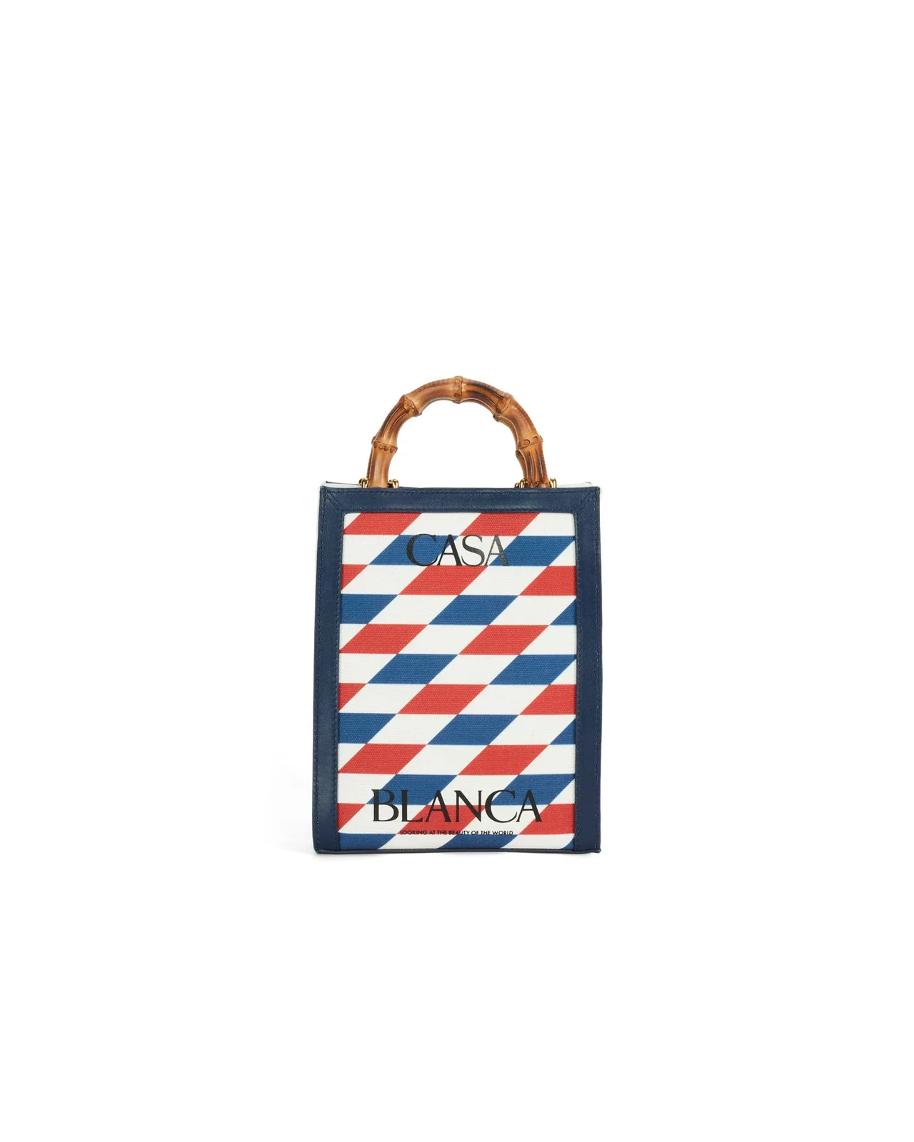 20% Calf Leather (Italian) 80% Cotton, Handle: 100% Bamboo, Hardware: Brass/Zamac.