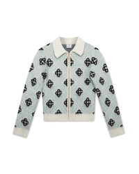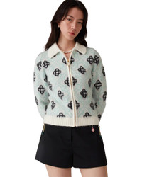 The mohair monogram zip jumper is a long-sleeve design featuring the house's signature interlocking CC monogram woven into the fabric. Completed with a zip closure, a signature diamond logo zipper tab, and a rib collar, cuffs, and hem. - Mohair blend fabric - Main: 98% merino wool 1% polyamide 1% elastane - Colour: white/blue - Specialised dry clean only - Made in China - Slim fit - The model is 177cm/5'9.5 and is wearing a size S