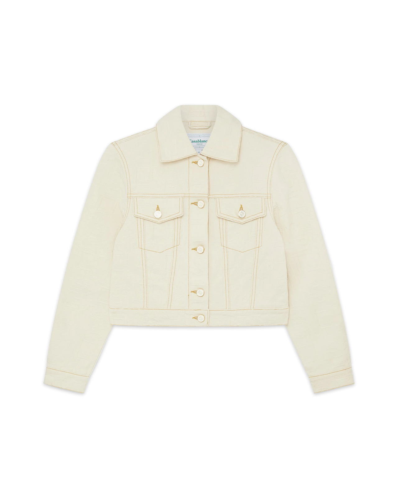 The Monogram jacquard denim jacket is crafted from a cotton fabric in the house's signature denim for a classic fit. Completed with chest pockets and gold hardware closure. Intended to be worn with its coordinating skirt. Monogram jacquard denim fabric Monogram jacquard denim 100% cotton Monogram print off-white Specialised dry clean only Made in Portugal Fits true to size, take your regular size The model is 177cm/5’10 and is wearing a size 36/UK8