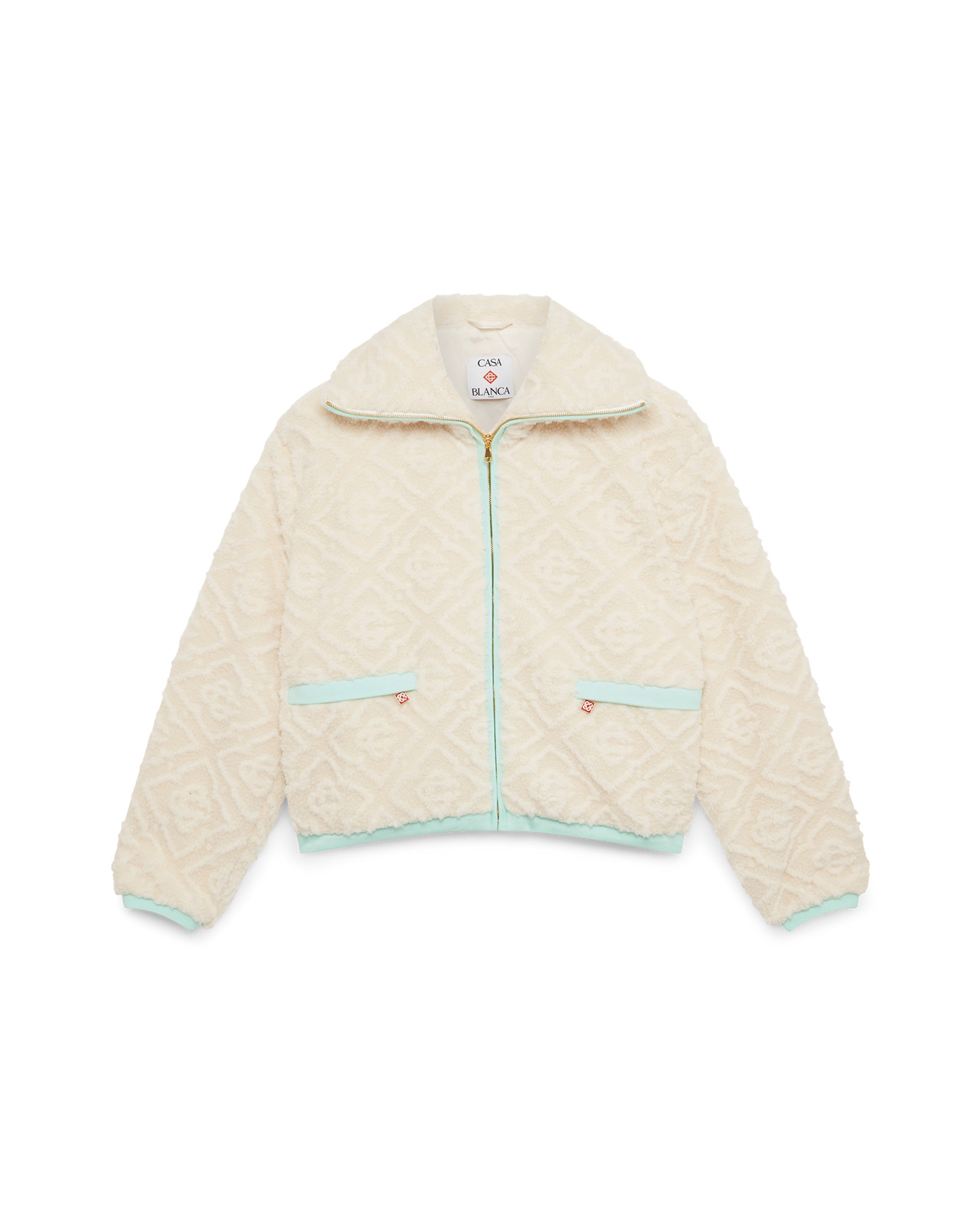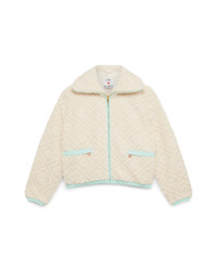 The Monogram jacquard fleece jacket is a long-sleeve, soft-textured design crafted from fleece fabric. Completed with a funnel collar, a zip closure featuring the house's signature diamond logo zipper tab, pastel rib cuffs, hem and hood edge detail, and pockets with zip closure. - Monogram fleece fabric - Main: 100% polyester - Colour: off-white - Specialised dry clean only - Made in China - Slim fit - The model is 177cm/5'9.5 and is wearing a size S