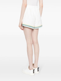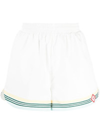 monogram track shorts Highlights - White - Stripe detailing - Applique logo - Elasticated waistband - Two side welt pockets - Straight hem Imported Composition Polyester 100% SIZE & FIT Model measurements Height 5 ft 9 in(1.75 m) Bust/Chest 31.88 in(81 cm) Hips 35.03 in(89 cm) Waist 23.22 in(59 cm) FittingInformation Designed for a relaxed, roomy fit Adjust this piece’s waistband to your preference using the drawstring Made from a midweight non-stretch fabric This piece fits true to size – take your usual size Washing instructions Machine Wash