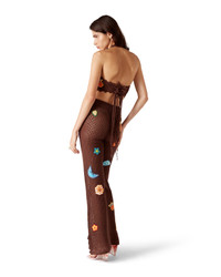 The motif crochet trousers are a knitted design crafted from an open-weave crochet cotton fabric. Completed with an elasticated waistband, motifs of the house's classic design element, and slit details at the ankles. - Crochet motif fabric - Main: 35% cotton 30% polyester 18% silk 17% linen - Applique: 100% cotton - Colour: brown - Specialised dry clean only - The model is 180cm/5'11 and is wearing a size S