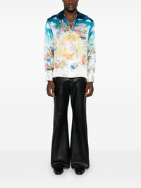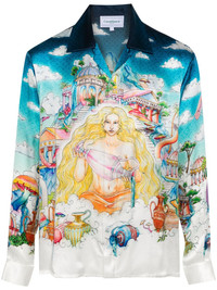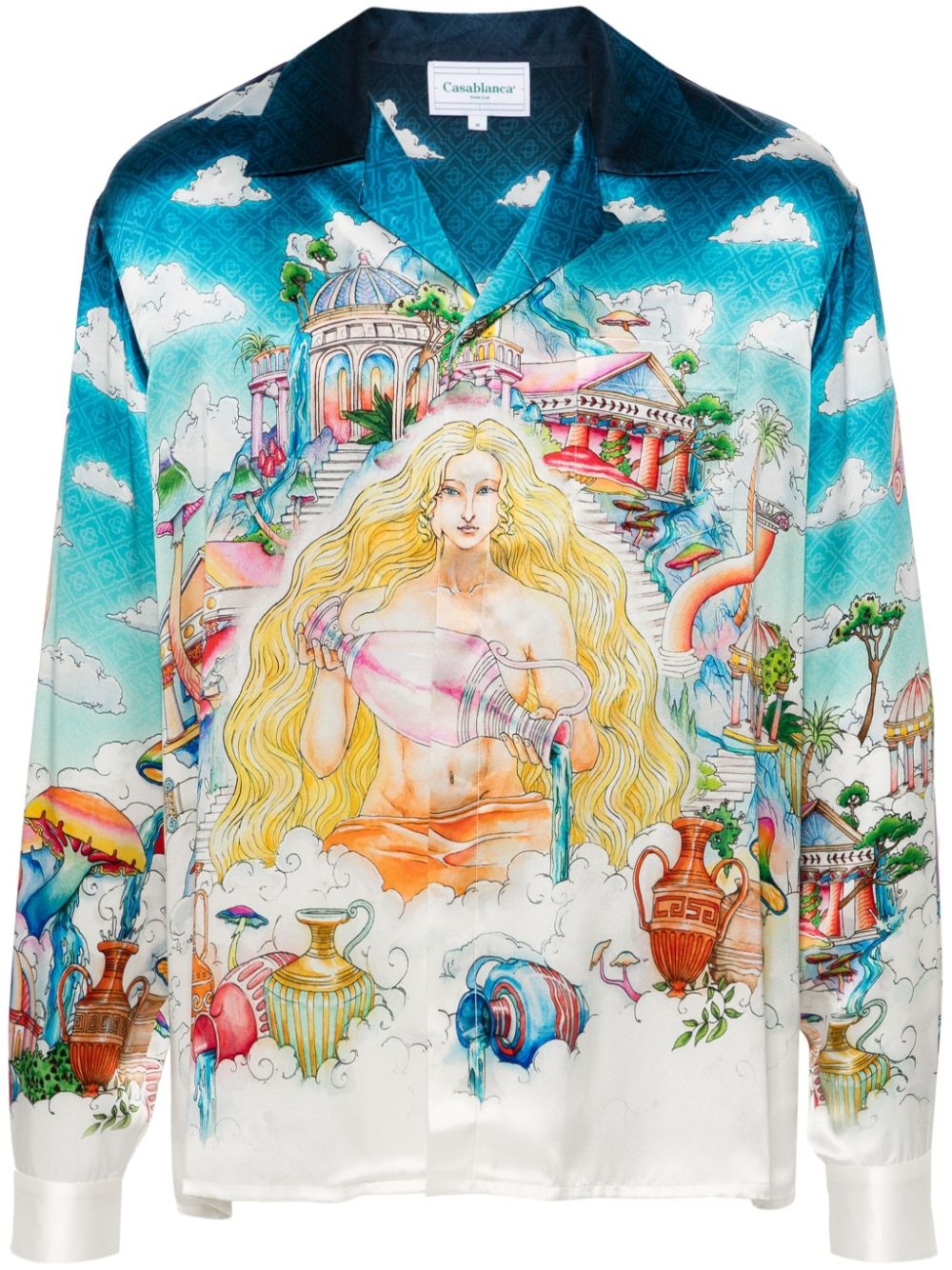 The Road To Knowledge shirt Highlights - Blue/multicolour - Silk - Satin finish - Concealed front button fastening - Cuban collar - The road to knowledge print - Monogram pattern - Long sleeves - Buttoned cuffs - Chest patch pocket - Straight hem - When buying this unisex item, keep in mind that it is graded in standard men's sizing. Made in Italy Composition Silk 100% SIZE & FIT Model measurements Height 6 ft 3 in(1.9 m) Bust/Chest 38.97 in(99 cm) Hips 36.61 in(93 cm) Waist 29.92 in(76 cm) FittingInformation This unisex piece is designed for a relaxed fit whether you usually select women's or men's sizes Made from a lightweight non-stretch fabric