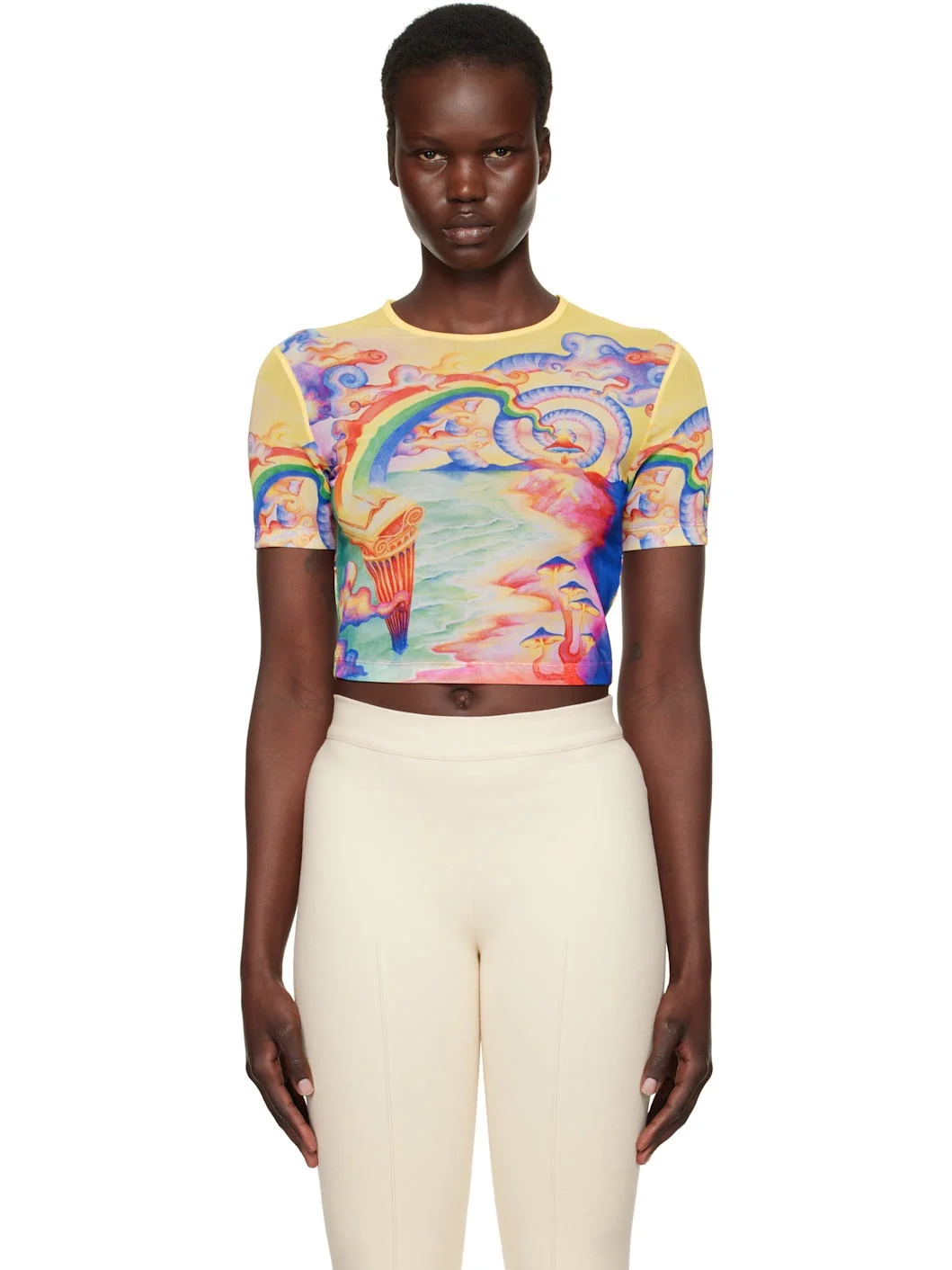 Semi-sheer stretch polyester mesh T-shirt. Graphics printed throughout. · Round neck · Cropped hem Supplier color: Natures teacher 93% polyester, 7% elastane. Made in Portugal 251195F110006