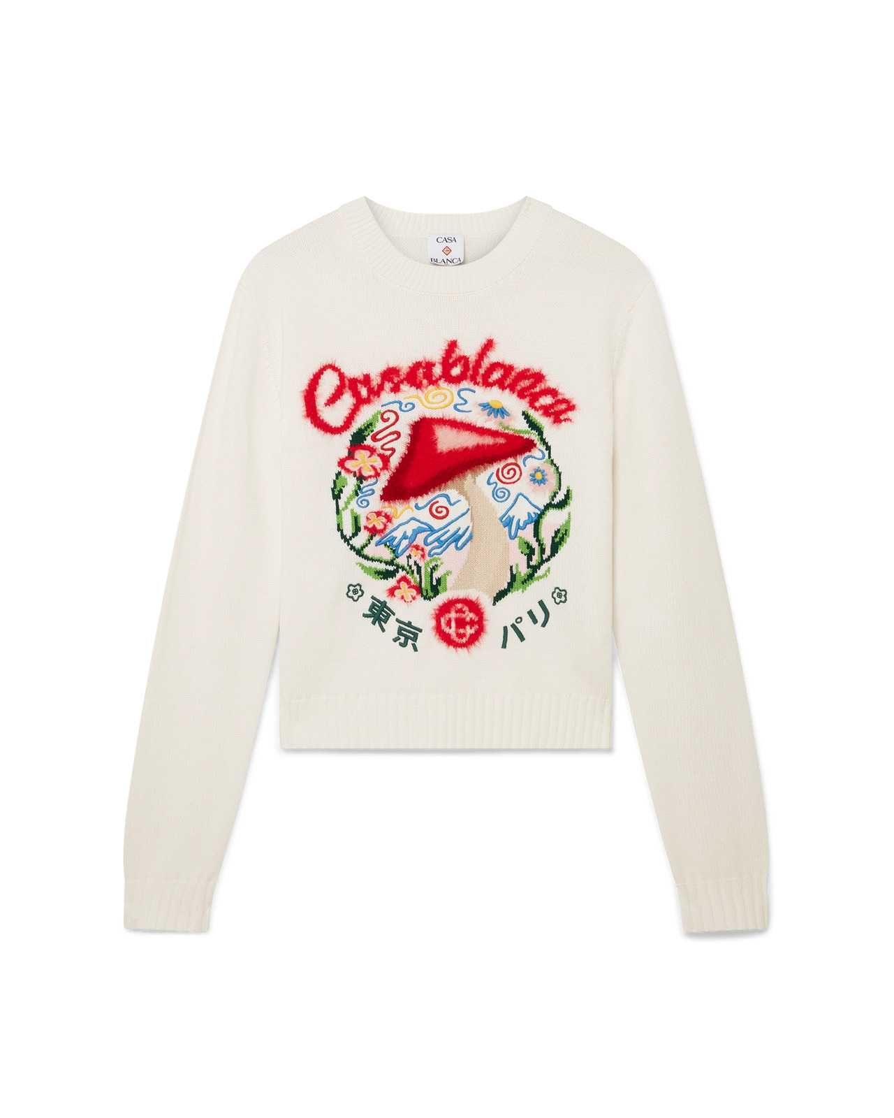 The cotton embroidered mushroom jumper is a long-sleeve design featuring one of the house's signature design elements - the mushroom - crafted from cotton fabric. Completed with a classic crew neck, ribbed cuffs and hem. - Knitted cotton fabric - 100% cotton - Colour: white - Specialised dry clean only - Made in China - Slim fit - The model is 177cm/5'9.5 and is wearing a size S