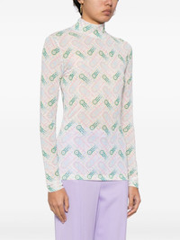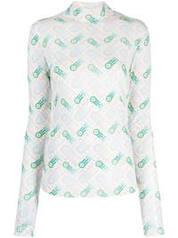 Ping Pong mesh top This mesh top shows Casablanca's focus on vibrant colours and details. Boasting a polo neck, it features a stretch design enhanced with a ping pong monogram of a ball in motion in different hues - taken from the house's Japan collection. Highlights - Multicolour - Stretch-design - Geometric print - High neck - Long sleeves - Straight hem - This item is made from at least 50% recycled or upcycled materials. for recycled synthetic clothing products, we highly recommend using a microfibre-catching washing bag to ensure that no microplastics that can pollute water are released in the process. - Learn more about what makes a product conscious on our conscious criteria page Imported Composition Recycled Polyester 93%, Elastane 7% SIZE & FIT Model measurements Height 5 ft 10 in(1.77 m) Bust/Chest 30.31 in(77 cm) Hips 33.85 in(86 cm) Waist 25.19 in(64 cm) FittingInformation Designed for a slim fit that sits just away from the body offering a close yet comfortable fit Made from a midweight stretch fabric, this piece offers elasticity and flexibility when worn This piece fits true to size – take your usual size