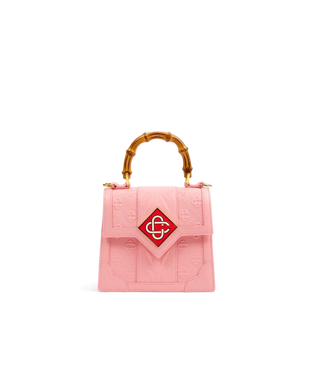 The pink mini Jeanne bag is the house's signature bamboo top-handle style with a flap opening reinterpreted for this season. Crafted from 100% Italian calf leather, the pink handbag is complete with a Casablanca diamond monogram in contrast red and a coordinating crossbody strap. Italian calf leather Bamboo handle Cotton lining Colour : pink Adjustable removable strap Fold-over flap with magnetic closure Inner card slot Measures L17.3cm x W7.5cm x H15cm Made in Spain
