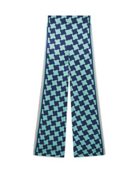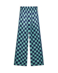 The Pool Tile wide-leg silk trousers are a palazzo-pant style in a classic swimming pool-inspired checkerboard design. The 100% silk satin trousers sit high at the waist and flare out to the floor. Finished with an elasticated waistband and side pockets. Printed silk satin fabric 100% silk Pool Tile print blue Specialised dry clean only Made in Italy Fits true to size, take your regular size The model is 177cm/5’10 and is wearing a size S