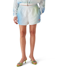 The printed poly taffeta shorts are a classic design featuring the house's signature diamond logo patch and unique artwork created in collaboration with Martin Naumann, known for his work with gradients and texture effects. Completed with an elasticised waistband, drawstring fastening, a lining, side pockets, and curved hem detail. - Technical taffeta fabric - 100% polyester - Lining: 100% polyester - Diamond logo patch - Colour: white - Delicate machine wash - - The model is 172cm/ 5'8 and is wearing size S - Made in China