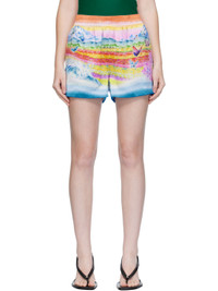 Silk satin shorts. · Graphics printed throughout · Elasticized waistband · Three-pocket styling · Fully lined Supplier color: Butterfly mountain Body: 100% silk. Lining: 100% polyester. Made in Italy 252195F088001