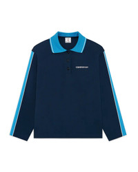 The Punto polo collared sweatshirt is a long-sleeve classic design featuring the house's Casablanca logo. Completed with a contrast rib collar with edge detail, stripe sleeves detail, crafted from soft cotton fabric featuring contrast neckline detailing. - Cotton fabric - 94% organic cotton 3% elastane - Contrast: 97% polyester 3% elastane - Casablanca embroidery - Colour: navy - Delicate machine wash - Made in Portugal - Relaxed fit