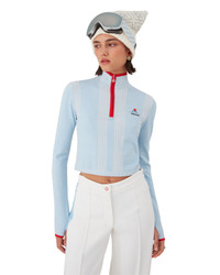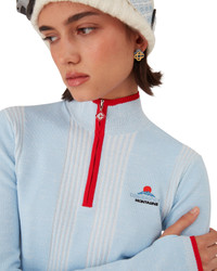 The ski merino base layer crop top is a refined apres-sport design crafted from merino wool fabric in blue, inspired by deep twilight settling over Japan's mountainous countryside. Drawing from serene beauty of evening light casting blue shadows across snow-covered valleys, the design blends sport-leisure elegance. Completed with a red contrast zip-up closure that features the house's signature diamond monogram toggles. - Merino wool fabric - 76% wool, 24% polyester - Colour: blue - Specialised dry clean only - Made in China - Slim fit - The model is 179cm/5'10 and is wearing a size S - Exclusive to casablancaparis.com, Paris Flagship store and selected retailers