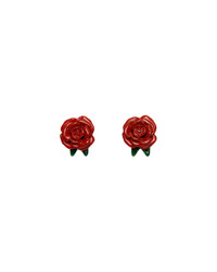 The Rose Drop earrings are a pair of earrings, shaped to form a rose with the rose stem piercing through your ear. Crafted from hand-painted enamel and gold-plated brass. This item is designed for pierced ears only. - Gold-plated brass and enamel - Colour: red green gold - Clean with a soft dry cloth - Includes a gift box, dust bag, and product detail booklet