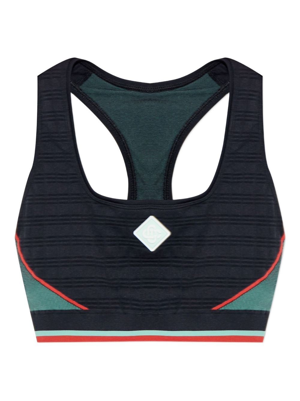 racerback sports bra Highlights - Black mint - Ribbed texture - Racerback design - Logo detail - Panel-detail - Elasticated hem band Imported Composition Polyamide 75%, Polyester 18%, Elastane 5%, Polypropylene 2% Washing instructions Read Manufacturer Guidelines