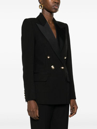 double-breasted blazer Highlights - Black - Peak lapels - Contrasting panel detail - Shoulder pads - Faux-buttoned cuffs - Chest welt pocket - Two side flap pockets - Faux-pearl buttons - Central rear vent - Internal logo tag - Full lining - Straight hem - Front button fastening Imported Composition Outer: Viscose 57%, Silk 43% Lining: Viscose 52%, Cotton 48% SIZE & FIT Model measurements Height 5 ft 11 in(1.8 m) Bust/Chest 32.67 in(83 cm) Hips 36.22 in(92 cm) Waist 24.4 in(62 cm) FittingInformation Designed for a slim fit that sits just away from the body offering a close yet comfortable fit The internal shoulder pads offer a structured shape Made from a midweight non-stretch fabric This piece fits true to size – take your usual size