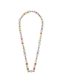 silver-tone chain necklace Highlights - Silver-tone - Pink, orange and green details - Chain - Lobster clasp fastening Imported