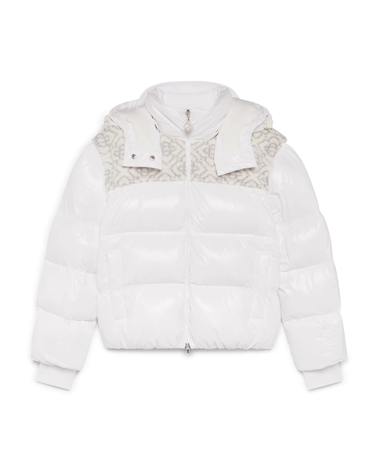 The ski puffer jacket is a refined outerwear design crafted from ripstop nylon fabric with down filling and contrasting monogram jacquard panel across the shoulders. Inspired by untouched beauty of Japan's rural snow country, beneath towering peaks and fresh powder transforms farmland into endless white horizons. Completed with a hood featuring CC logo toggles and drawstring fastenings, a stand-up collar providing extra warmth and protection against the elements, a zip closure with the house's signature diamond logo zipper tab, front pockets with zip closure, branded adjustable cuff straps, and elasticised hem and cuffs. - CC ripstop puffer fabric - Main: 100% polyamide - Contrast: 100% polyester - Padding: 80% down 20% feather - Colour: white - Specialised dry clean only - Made in Italy - Relaxed fit - The model is 187cm/6'1 and is wearing a size M - Exclusive to casablancaparis.com, Paris Flagship store and selected retailers