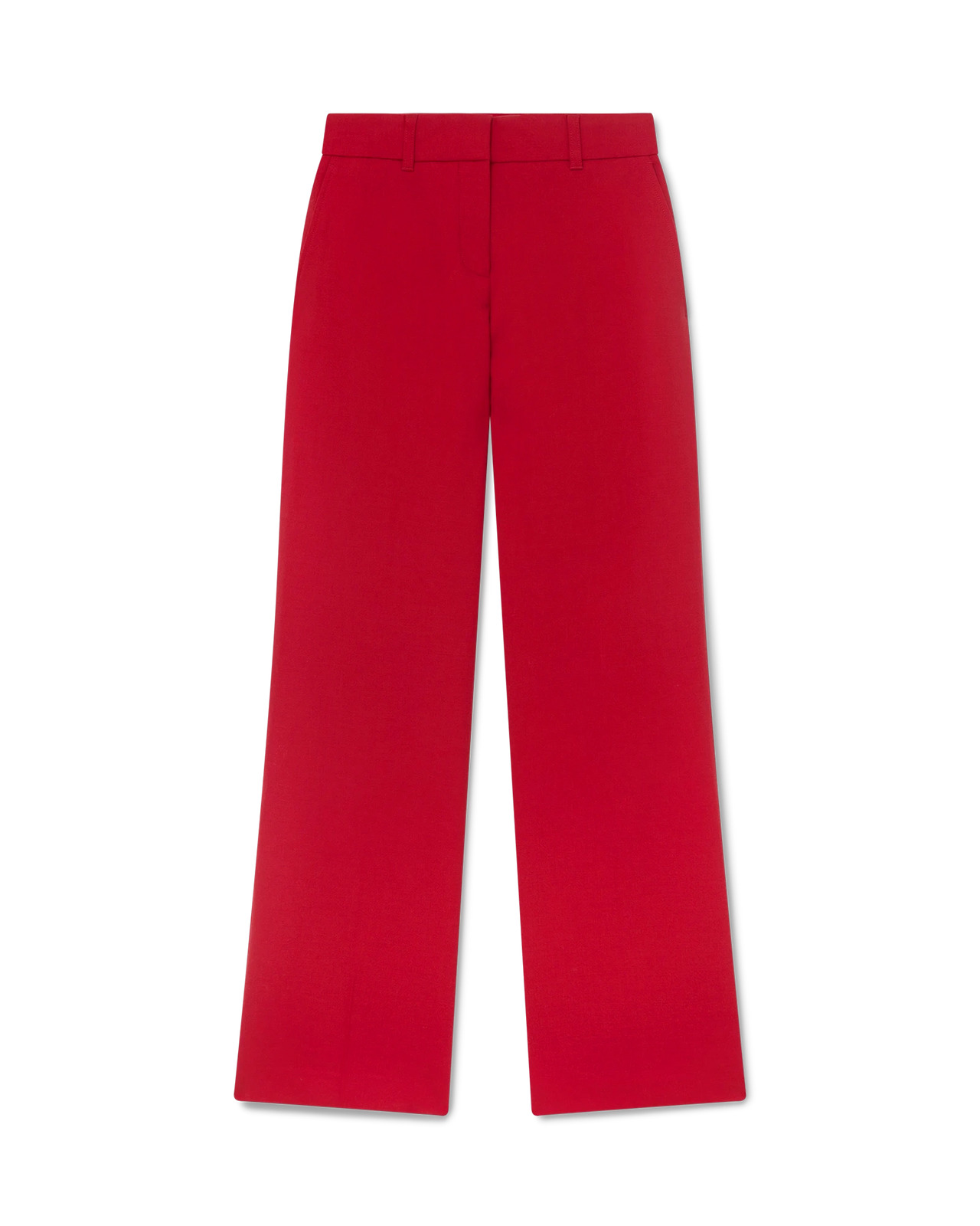The slim tailored trousers are a straight-leg design crafted from a wool blend fabric. Completed with slanted front pockets, welt back pockets, zip closure, and belt loops. Wool blend fabric 94% virgin wool 5% lycra 1% polyamid Lining: 52% viscose 48% cotton Colour: red Specialised dry clean only Made in Portugal Fits true to size, take your regular size