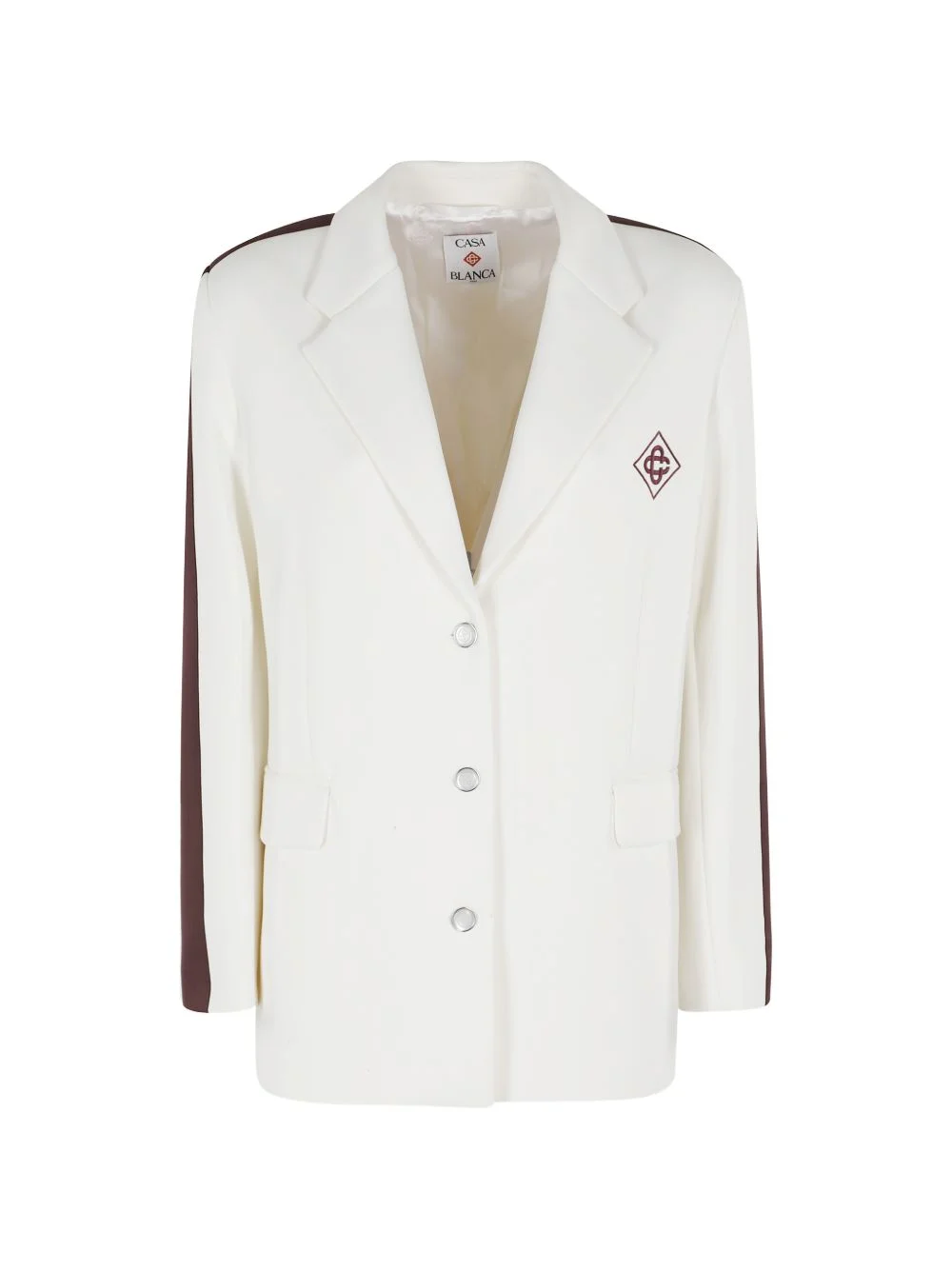 stripe blazer Highlights - White - Logo embroidery - Stripe detail - Button fastening - Welt pockets - Notched lapels Imported Composition Outer: Polyamide 100% Lining: Acetate 50%, Viscose 50% Washing instructions Read Manufacturer Guidelines