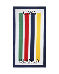 A terry cotton towel features the house's allover logo artwork with a navy border reinterpreted for the exclusive Nordstrom capsule centred around modern tennis-inspired athleisure. - 100% cotton - Stripe logo print multicolour - Measures 100 x 190 cm - Delicate machine wash - Made in Portugal - Exclusive to casablancaparis.com & nordstrom.com