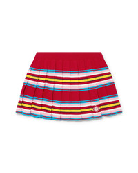 The stripe pleated skirt is a mini-style crafted from a stripe fabric. Completed with an elasticated waistband, pleats, green, pink and blue horizontal stripes, side zip closure, and fitted under-shorts. - Stripe pleated fabric - Main: 66% viscose 14% polyester 13% cotton 7% polyamide - Applique: 95% viscose 5% polyester - Colour: Dark red multicolour - Fits true to size, take your regular size - The model is 177cm/5'9.5 and is wearing a size S