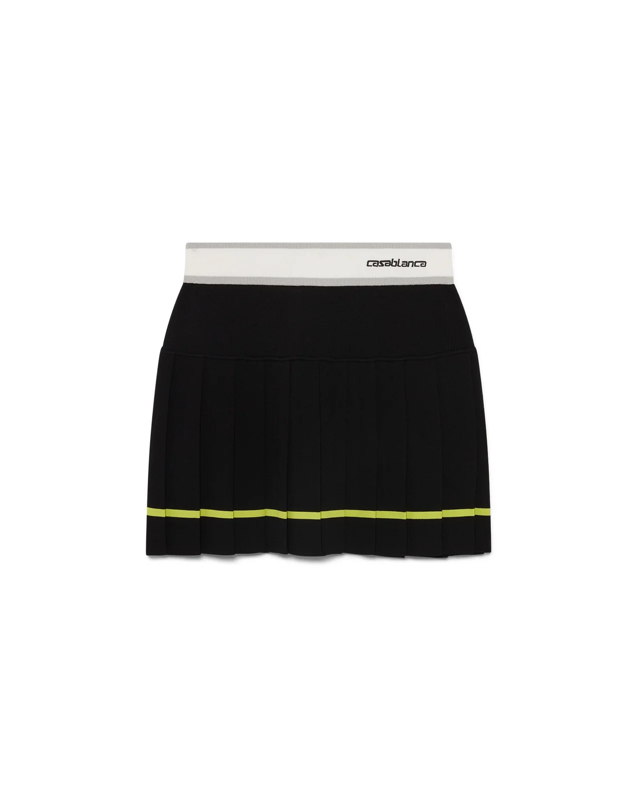 The striped pleated skirt is a mini-style, with a structured silhouette that reflects the house's atelier approach to sportswear. Completed with an elasticised waistband featuring the Casablanca logo, a plain yoke, and a pleated panel with yellow stripe hem detail. - Viscose fabric - 83% viscose 17% polyester - Colour: black - Delicate machine wash - Made in China - Slim fit