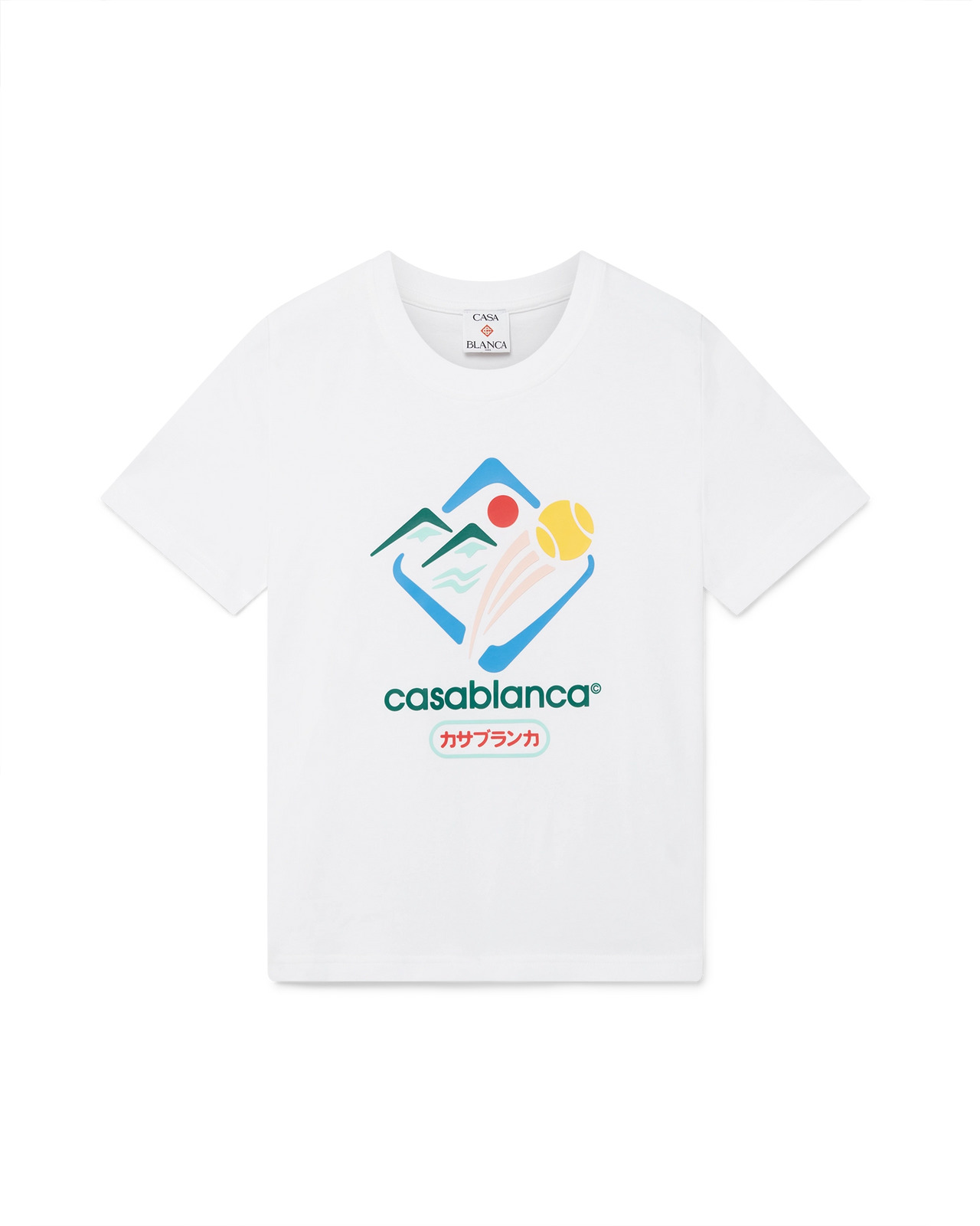 The Montagne Sportif cropped t-shirt is a short-sleeve design crafted from organic cotton fabric featuring the house's seasonal artwork. Completed with a classic crew neck - designed for a slim fit. - Printed cotton fabric - 100% organic cotton - Colour: white - Delicate machine wash - Made in Portugal - Slim fit - The model is 177cm/5'9.5 and is wearing a size S