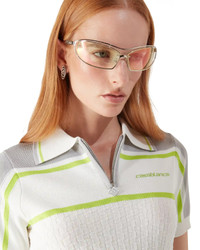 The tennis polo shirt is a knitted design featuring contrast shoulders and outer-sleeves. Completed with a zip closure, a collar with striped edge detail, signature Casablanca logo, and ribbed cuffs and hem details. - Technical knit fabric - 83% viscose 17% polyamide - Casablanca embroidery - Colour: white - Specialised dry clean only - Made in China - Slim fit