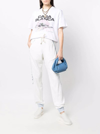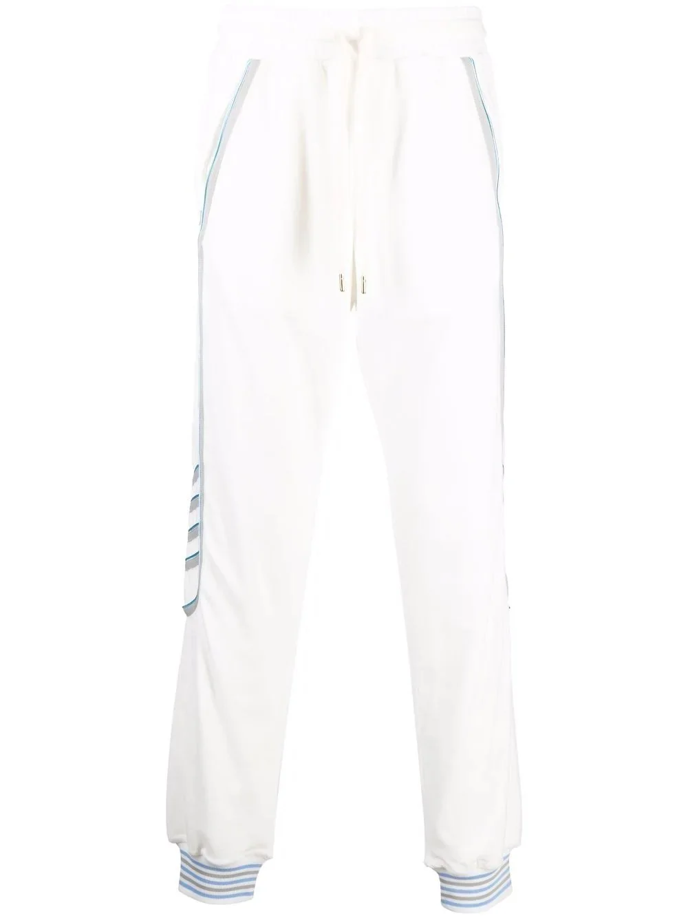 torchon piping-detail track pants Casablanca's sport influences can be seen in this pair of track pants with contrasting torchon piping and a drawstring fastening waist. This also highlights the brands balance of relaxed yet refined design. Highlights - White - Cotton - Drawstring fastening waist - Two side slit pockets - Torchon piping detail - Rear patch pocket - When buying this unisex item, keep in mind that it is graded in standard men's sizing Imported Composition Outer: Polyester 100%, Modal 40%, Cotton 40%, Nylon 20% Lining: Cotton 100% SIZE & FIT Model measurements Height 5 ft 10 in(1.78 m) Bust/Chest 31.49 in(80 cm) Hips 36.22 in(92 cm) Waist 25.59 in(65 cm) FittingInformation This piece is unisex. Please take care when selecting your size Cut for a relaxed fit for both men and women Made with a mid-weight fabric Washing instructions Dry Clean Only