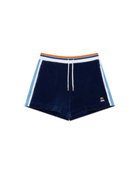 The Velour Montagne shorts are a sportswear design crafted from soft textured velour fabric. Completed with a contrast elasticised waistband, drawstring fastening, in-seam pockets, stripe detail down the sides, and a back patch pocket. - Velour fabric - 40% cotton 40% modal 20% polyamide - Colour: navy - Specialised dry clean only - Made in Portugal - Relaxed fit - The model is 177cm/5'9.5 and is wearing a size S