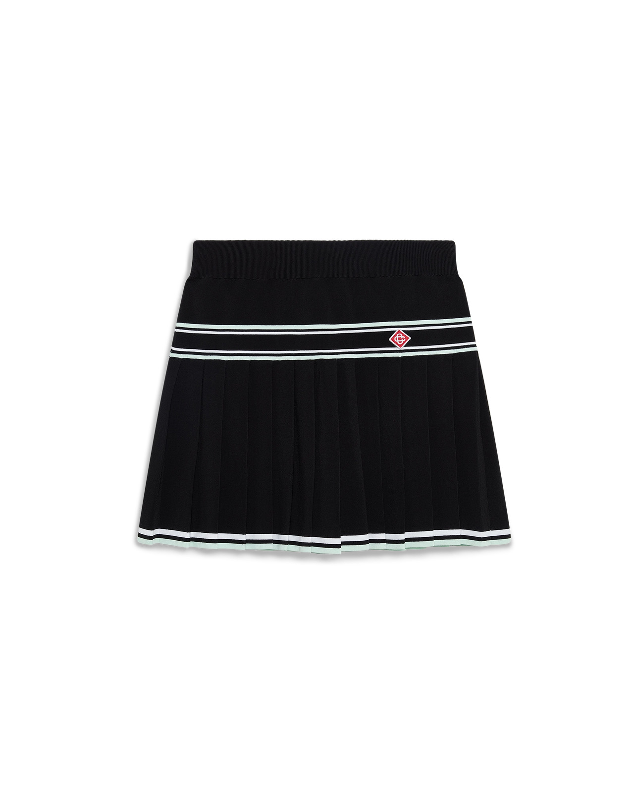 The viscose pleated mini skirt is a short design crafted from viscose fabric. Completed with a yoke featuring stripe detail, a pleated panel with horizontal stripe hem detail. - Knitted fabric - Main: 100% viscose - Colour: black - Specialised dry clean only - Made in China - The model is 177cm/5'9.5 and is wearing a size S