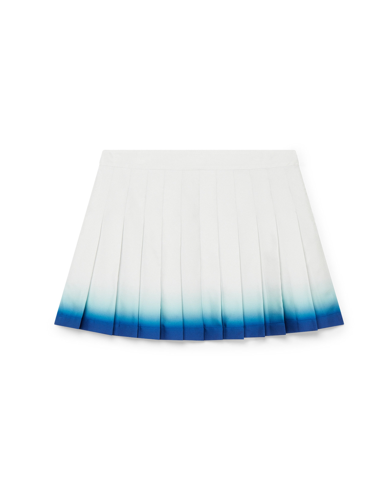 The Casa Way Skate pleated skirt is a short-style crafted from silk twill fabric. Completed with a waistband, pleats, a blue fade horizontal hem detail, side zip closure, and a lining. - Silk twill fabric - Main: 100% silk - Lining: 100% polyester - Colour: white - Specialised dry clean only - Made in Italy - The model is 180cm/5'11 and is wearing a size S