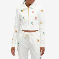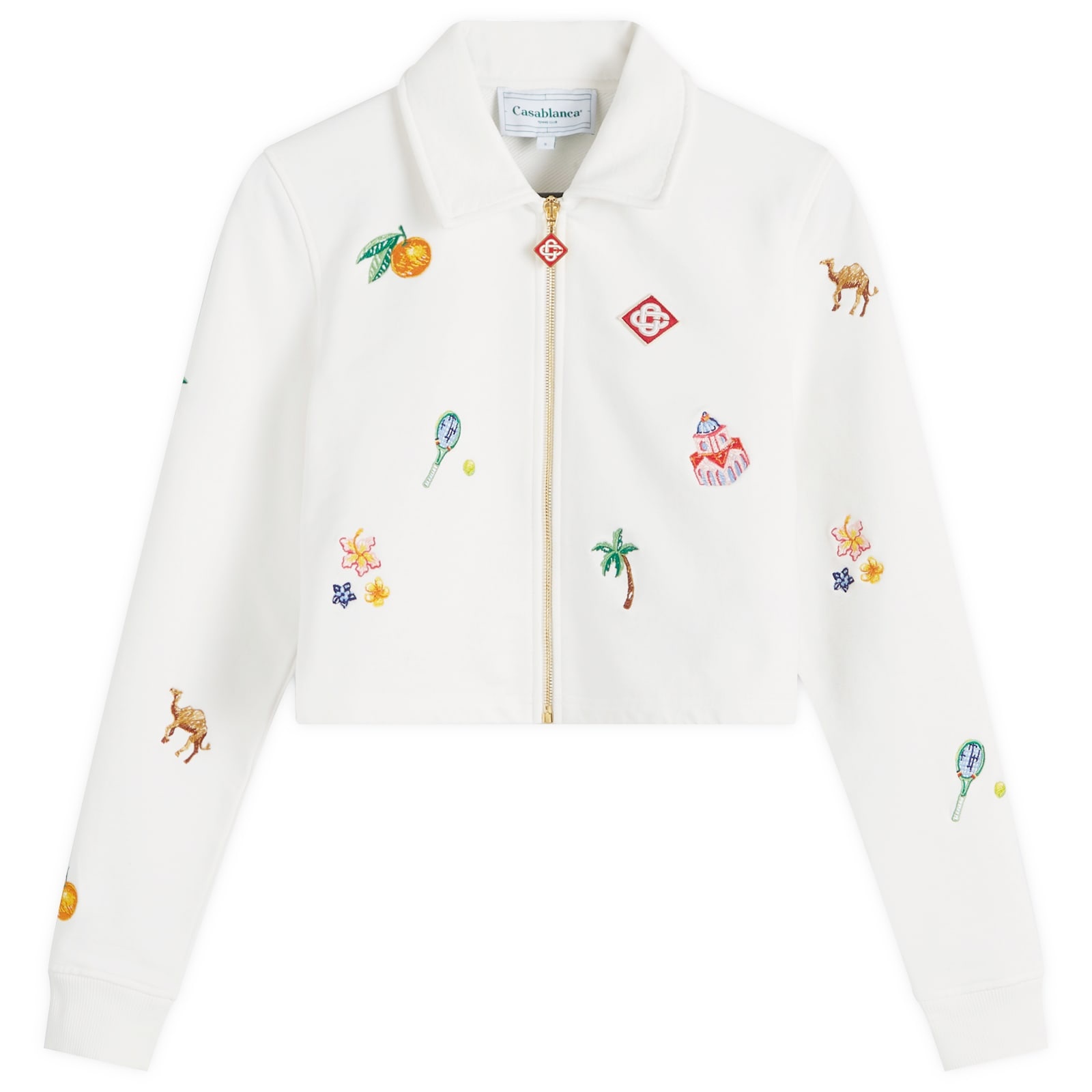 Minimalist by the brand’s standards, this Casablanca Elements En Crayon Track Jacket is cut from an organic cotton. With a fashion conscious crop style, this zip through piece is embroidered with colourful motifs that embody the brand. - 100% Cotton - Classic Collar - Zip Closure - Side Pockets - Embroidered Branding