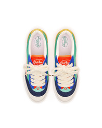 The Women's Del Mar multicolour sneaker takes its name from the famous 1980s skatepark in California. The Del Mar sneakers are themed around classic late 70s to early 80s skate shoes. They feature a lot of the codes of the early skate shoes with canvas panelled uppers, rubber toe caps, flat sole and chunky laces, contrast eyelets and subtle branding. The green colour way is classic Casablanca brand colour. The multicoloured colourway is inspired by the bright panelling and clashing colours of that time period. - Tonal multicolour leather upper - Branded Casablanca diamond rubber patch on the heel - Silicon Casablanca Sport branding on lateral side - Woven Court tongue label - Tennis Court inspired outsole realised in tennis-inspired primary colours - Gold lace tips - Fits true to size