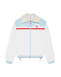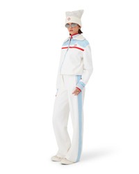 The hybrid ski track jacket is a refined apres-sport design crafted from technical dry fabric in white, inspired by crystalline purity of Japan's alpine countryside. Drawing from morning mist over snow-covered valleys and frozen lakes mirroring towering mountains, the design features performance-oriented construction with polyester lining. - Technical dry viscose fabric - Main: 84% viscose, 12% polyamide, 4% elastane - Lining: 100% polyester - Colour: white/blue - Specialised dry clean only - Made in Portugal - Relaxed fit - The model is 179cm/5'10 and is wearing a size S - Exclusive to casablancaparis.com, Paris Flagship store and selected retailers