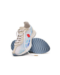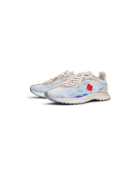 The Women's Stade blue sneaker takes its name from the Ancient Greek measurement for the distance of a foot race, which later became the word for stadium. The style is inspired by performance running shoes and is a transportation of modern technology from ancient tradition, the codes of modern running with the lightweight mesh and glow print add to the modernity. The sole features sculptured curves, which is a reference to our Atlantis shoe and a stable of Casablanca design. - Tonal blue textile upper - Branded Casablanca diamond rubber patch on the heel - Silicon Casablanca Sport branding on lateral side - Woven tongue label - Gold lace tips - Fits true to size