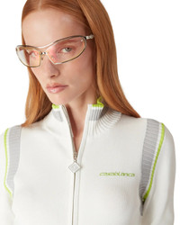 The collared neckline long-sleeve tennis jacket is a sportswear-inspired design featuring the Casablanca logo in green. Completed with a zip closure featuring the house's signature diamond zipper tab, knitted high-collar, cuffs, hem, and armhole detail, and a relaxed silhouette. - Technical knit fabric - 83% viscose 17% polyamide - Casablanca embroidery - Colour: white - Delicate machine wash - Made in China - - - - Relaxed fit